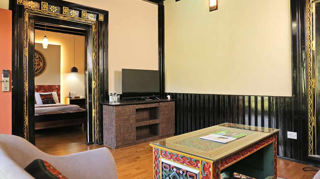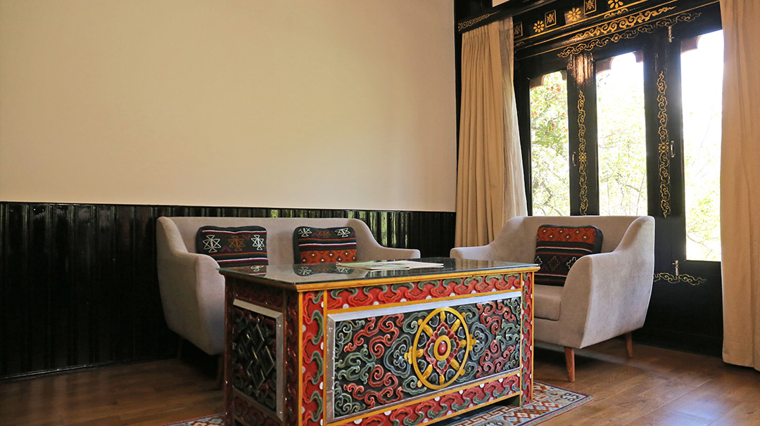 Decorated in a traditional Bhutanese theme, the 59-square metre deluxe rooms are enhanced by a modern and luxurious amenities looking over Pa Chu (Paro River). The spacious bathroom has separate bath and rain shower facilities.